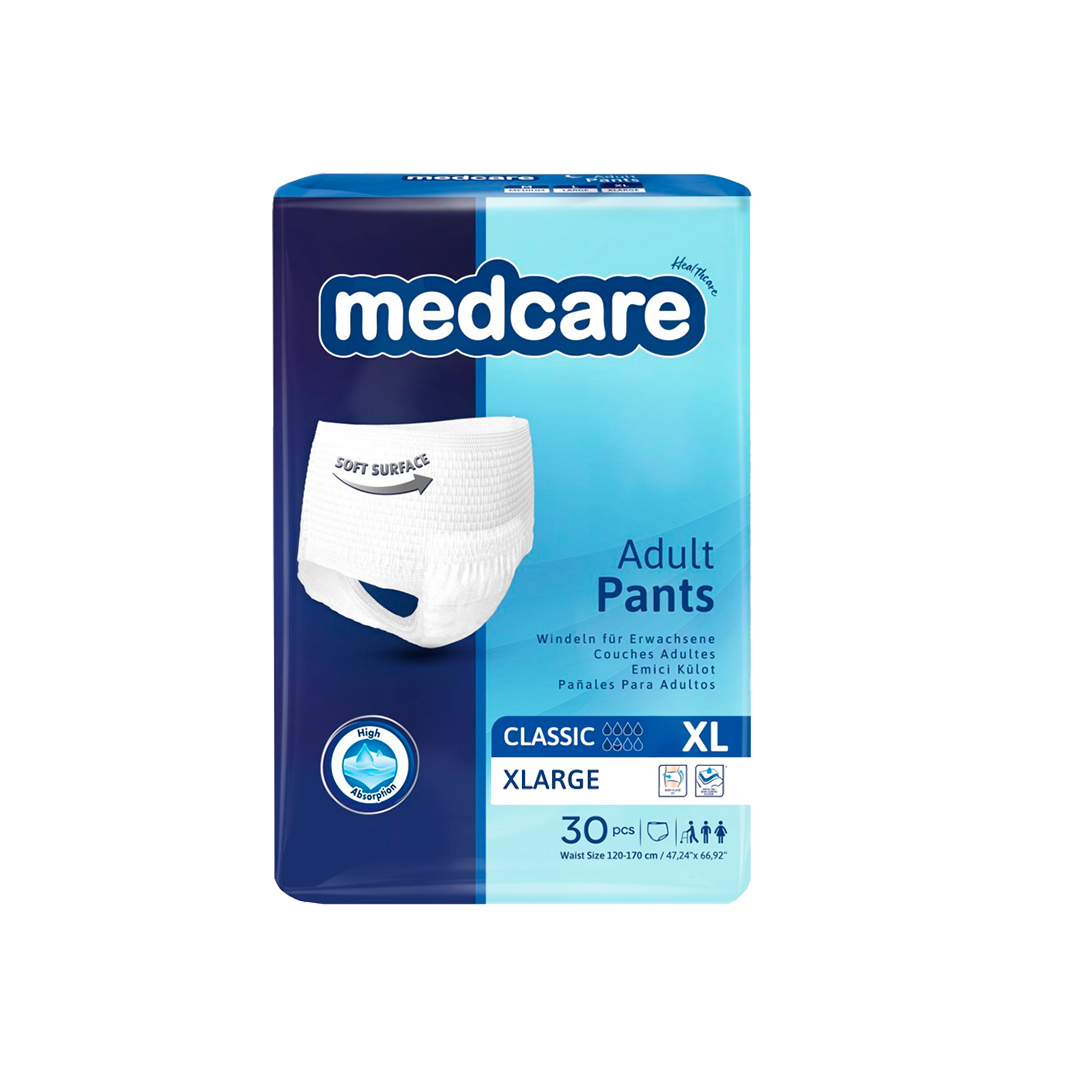 Con materiales suaves, transpirables y un sistema de absorción que protege contra fugas y humedad, Medcare Pants es ideal para personas mayores, usuarios independientes o pacientes en tratamiento médico. Su diseño unisex y cintura elástica aseguran un ajuste perfecto y discreto bajo la ropa.