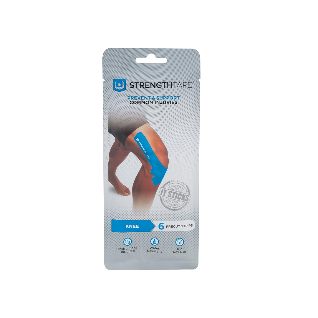 Los kits de encintado para la rodilla STRENGTHTAPE®incluyen 2 tiras de cinta precortadas de 10 pulgadas para 2 aplicaciones. Cada kit incluye instrucciones fáciles de seguir para las lesiones más comunes. Se pueden encontrar videos de aplicaciones adicionales en nuestro sitio web