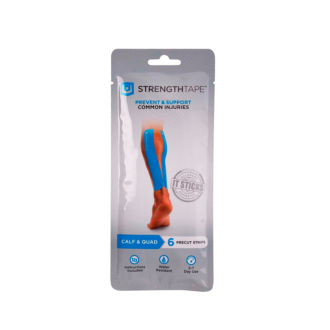Los kits de encintado para pantorrilla STRENGTHTAPE® incluyen 6 tiras de cinta precortadas de 10 pulgadas para 2 aplicaciones. Cada kit incluye instrucciones fáciles de seguir para las lesiones más comunes. Se pueden encontrar videos de aplicaciones adicionales en nuestro sitio web